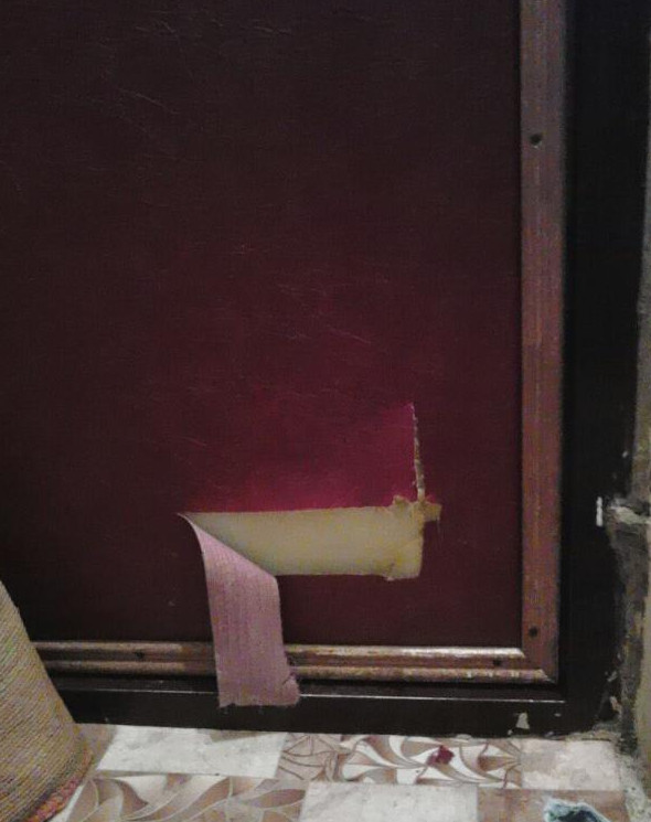 - низкая ремонтопригодность. Если дерматин порезали или он порвался, отремонтировать его уже невозможно, придётся обивать двери новым материалом.