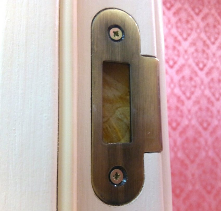 Личинка держится на одном винте, шляпка которого выходит на замочную пластину дверного полотна