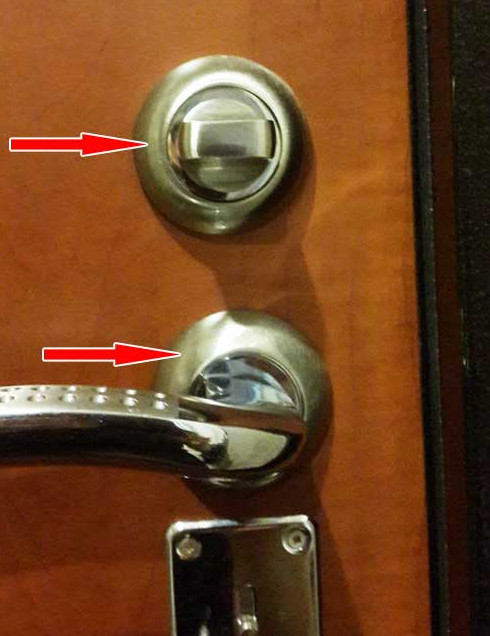 Стержень, соединяющий внутренние и наружные дверные ручки, вытягивается вовнутрь