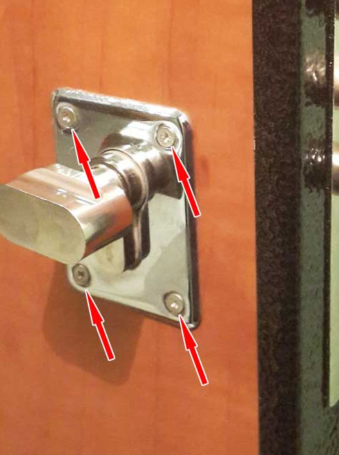 Как правило, замок крепится винтах сбоку двери, которых может быть от двух до шести