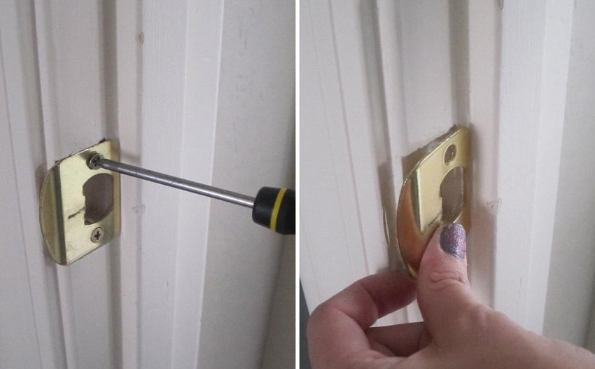 Ответную планку монтируют на дверной коробке напротив язычка защёлки