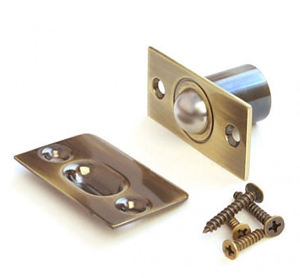- роликовая. Этим механизмом часто снабжаются стационарные ручки. Ролик подпружинен и фиксирует дверь при закрывании, а если приложить к полотну определённое усилие, то дверь откроется.
