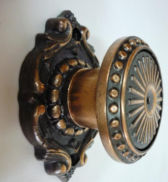 Искала ручку для кухонной двери цвета «белёный дуб». Простую, без всяких там блестяшек, с защёлкой, медную или бронзовую, матовую. Совершенно случайно где-то на распродаже увидела ручку «Аlte Burg 45». За «смешные» деньги продавался набор испанский! Купила сразу. В новую дверь нам её мастер вставил быстро и аккуратно. Ручка дверная «Casa de Bronces. Alte Burg 45» на круглой розетке (медь) фото С двух сторон смотрится хорошо. И к ручкам на кухонном гарнитуре (по цвету бронза матовая) и материалу (латунь) подходит. И на светлой двери (смотрится очень стильно. И пользоваться ею удобно, и ухаживать за ней просто. Жалею только, что купила одну. Двери ещё в ванной и туалете будем похожие ставить, такие ручки и там были бы кстати просто защёлки-замочки добавить и всё…