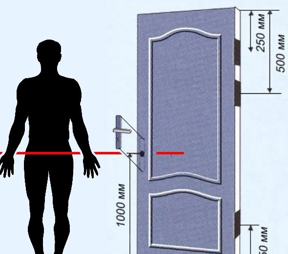 Высота установки ручки составляет 80–100 см и выбирается такой, чтобы ручкой было удобно пользоваться всем жильцам