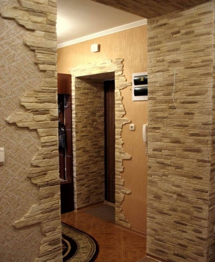 Плиткой под натуральный камень отделывают дверные проёмы внутри и снаружи квартир