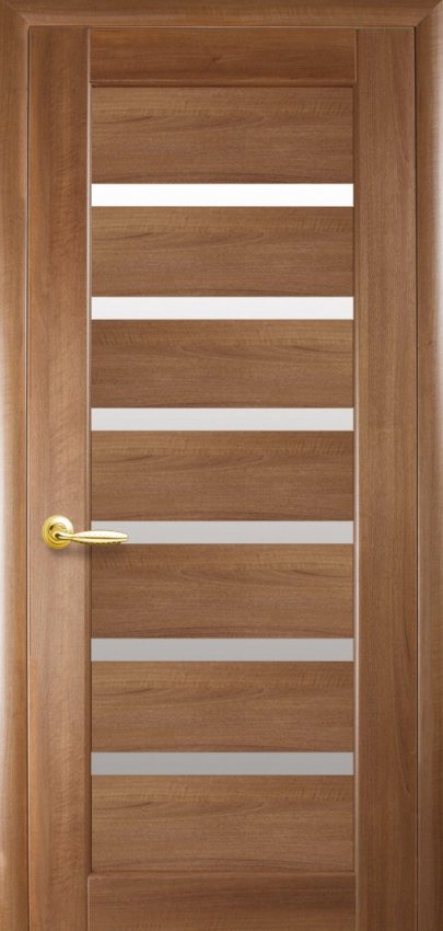Натуральный шпон представляет собой тонкий срез дорогостоящего древесного массива. Самый распространённый способ срезания шпона — строгание. Материал производится на заводском оборудовании, толщина составляет в среднем 1–1,5 мм (чем больше толщина, тем шпон дороже, а работать с ним в домашних условиях сложнее). Необходимым условием для монтажа шпона является ровная гладкая поверхность дверного полотна. Для этого чаще всего применяют водостойкую фанеру. А облицовочные работы называют фанеровкой. Выгоды шпона очевидны. На недорогую поверхность наклеивается тонкий слой дорогой древесины — и дверь выглядит очень респектабельно. При правильном монтаже отличия заметны только опытным мастерам.