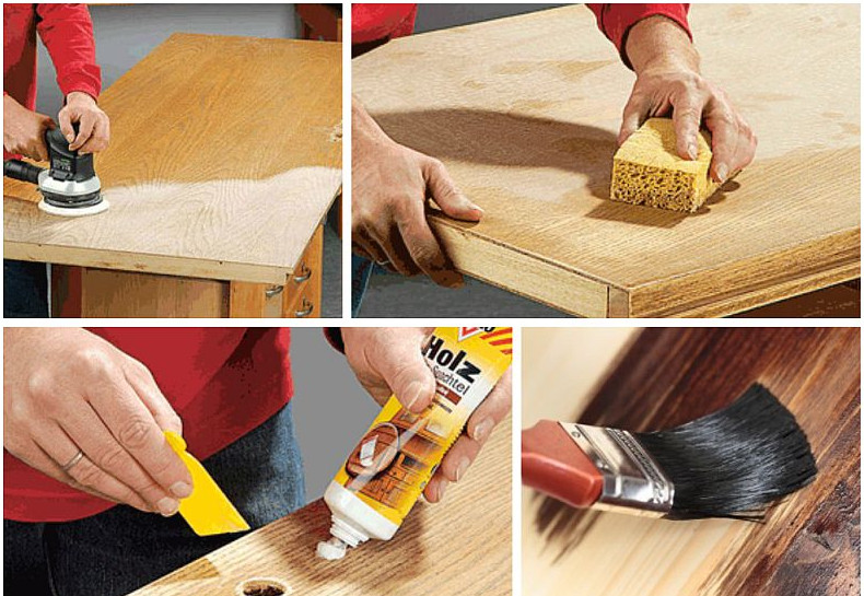 При возникновении шероховатостей на поверхности шпона их устраняют наждачной бумагой