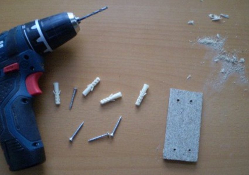 - Монтаж кнопки. На стене делают отверстия для дюбелей. Можно вырезать основание из ДСП, которое фиксируют в выбранном месте. К нему при помощи саморезов фиксируют кнопку.