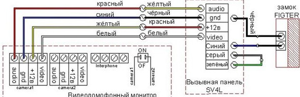 - соединительные провода (четырёхжильный для подключения монитора к вызывной панели и электрический типа ШВВП 2х0,75 для подвода питания и линии электрозамка).