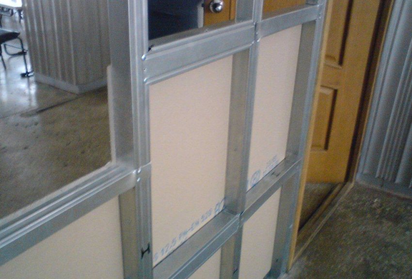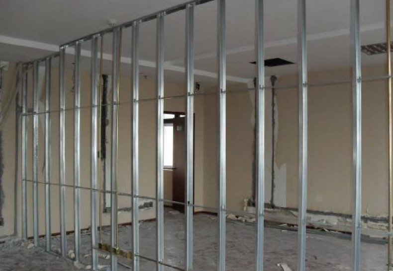 Для устройства перегородки из гипсокартона нужно смонтировать каркас из металлических профилей