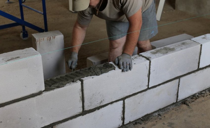 Пенобетонные блоки укладывают на цементно-песчаный раствор с армированием рядов сеткой или арматурой
