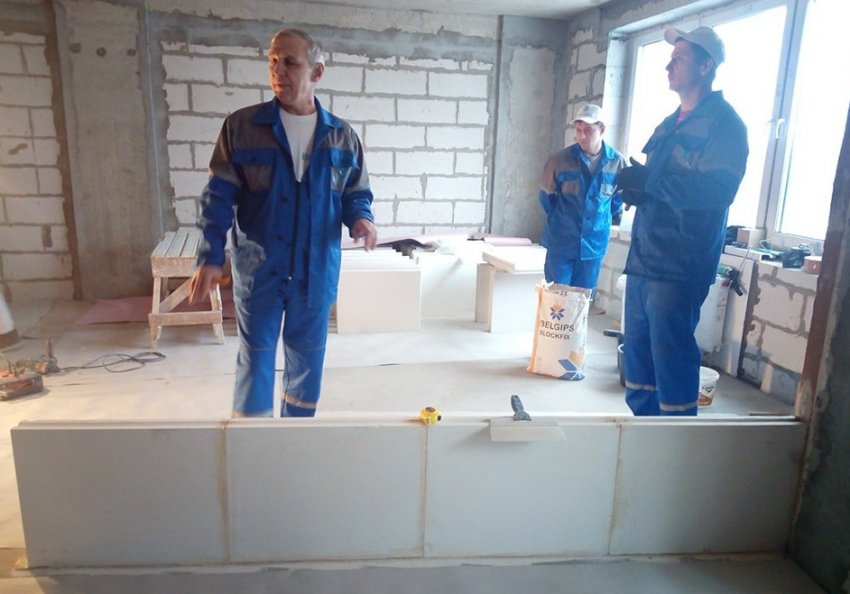 Перегородка из гипсовых плит имеет довольно большой вес и требут финишной отделки