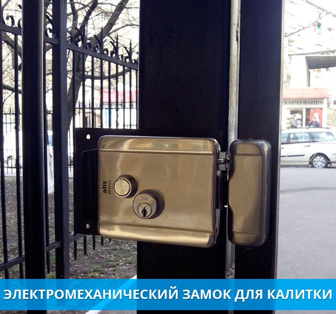 Накладные электромеханические замки ISEO отличные замки, ставим только их уже много лет. Единственно что при открывании наружу лучше делать металлический заход для язычка, штатный пластмассовый в топку. Или по возможности делать внутреннее открывание калитки.