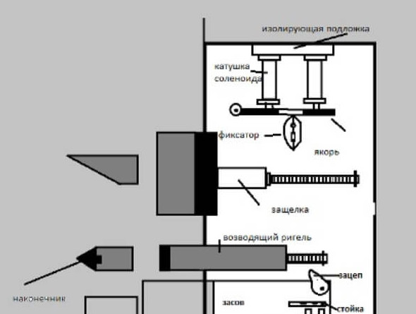 Если говорить об особенностях конструкции электромагнитных замков, то их отличия от механических моделей будут в том, что запорные элементы оборудованы электрическим приводом, состоящим из запорного и взводящего ригелей и соленоида.