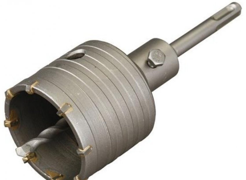 - В отмеченных местах электродрелью со сверлом делают крепёжные отверстия для замка, а при помощи коронки — отверстие для цилиндра.