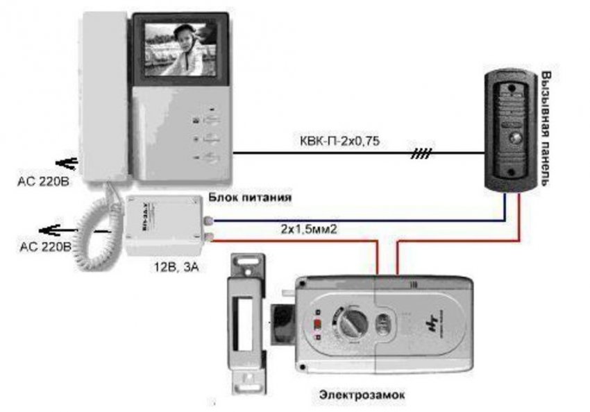 - Подключают замок в соответствии со схемой, имеющейся в инструкции. Если есть дополнительные устройства (домофон, считыватель карт, блок питания, вызывная панель и т. д.), их также подключают в систему.