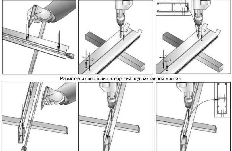 В направляющих сверлят отверстия, расположение которых зависит от способа монтажа