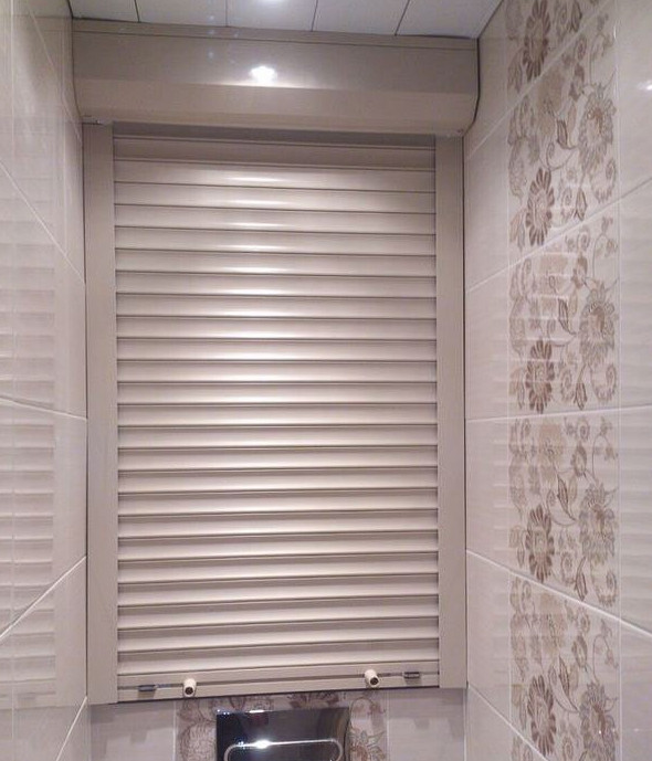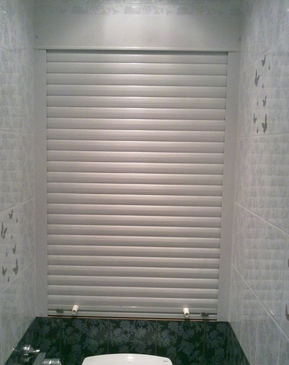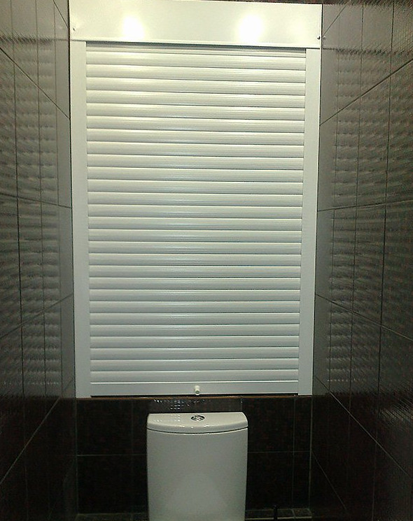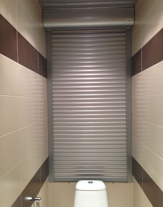 Металлические рольставни в туалет ставят редко, при этом лучше, чтобы они были сделаны из нержавейки