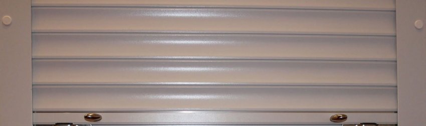 Понятно, что в туалет не стоит устанавливать мощные стальные рольставни. Для этого случая надо выбирать модели, выполненные из лёгких и долговечных материалов (пластик, алюминий).