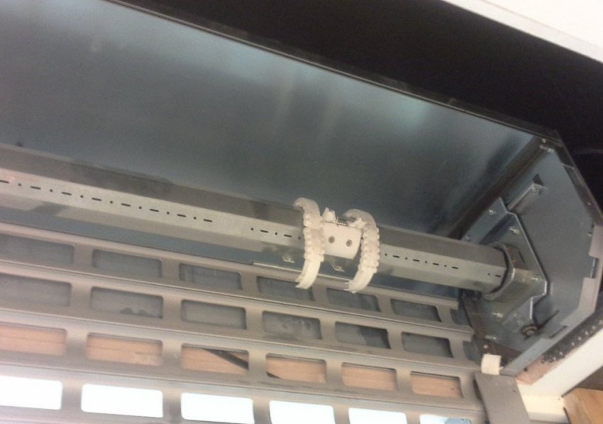 - Повреждение короба. На поломку будет указывать появление шумов внутри короба, которые возникают из-за трения полотна о корпус. Чтобы устранить неисправность, надо полностью опустить полотно, после чего открыть крышку короба, визуально определить причину и в случае выхода из строя определённой детали (обычно это подшипник вала) заменить её.