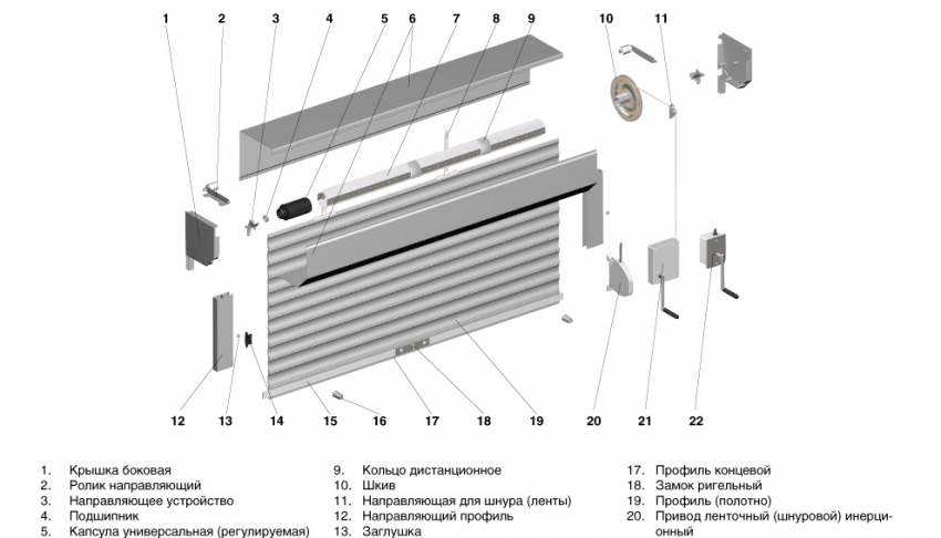 Несмотря на разные функции, рольставни для туалета и те, что устанавливаются на окна, имеют одинаковое устройство. Состоят они из таких элементов: