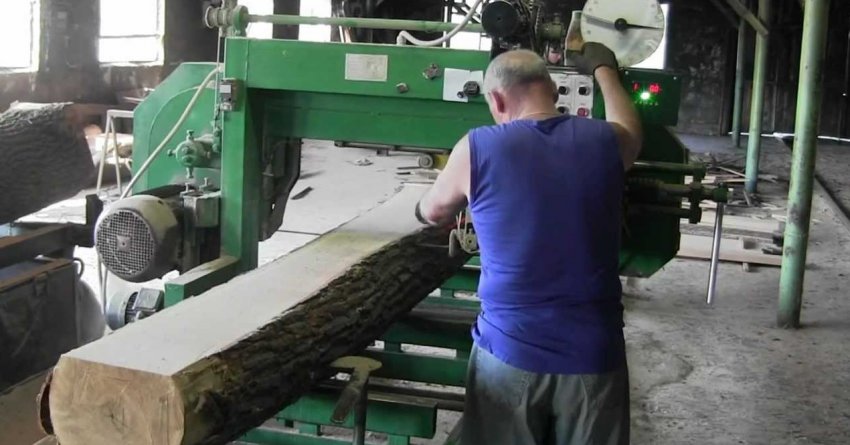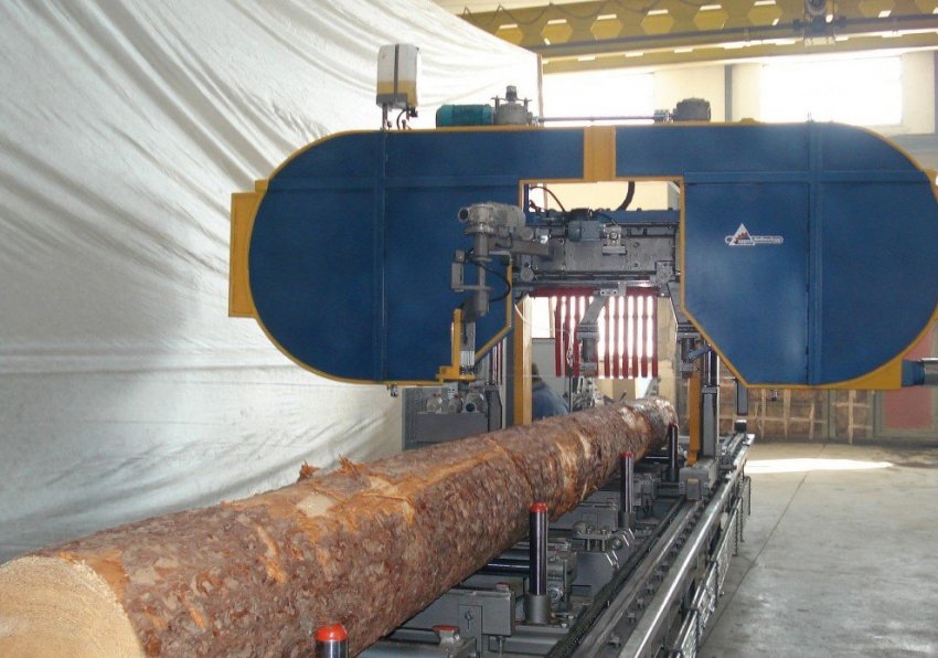 - Пилорамы и ленточные пилы, используемые для раскроя кругляка.