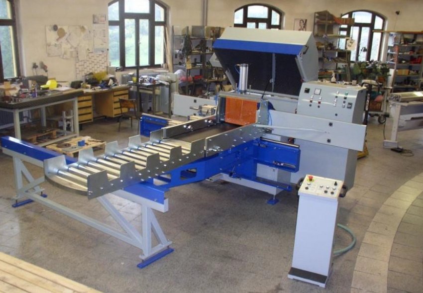 - Лесоматериал (кругляк) сосновых пород распиливается на заготовки с помощью ленточных пил с автоматической подачей брёвен.