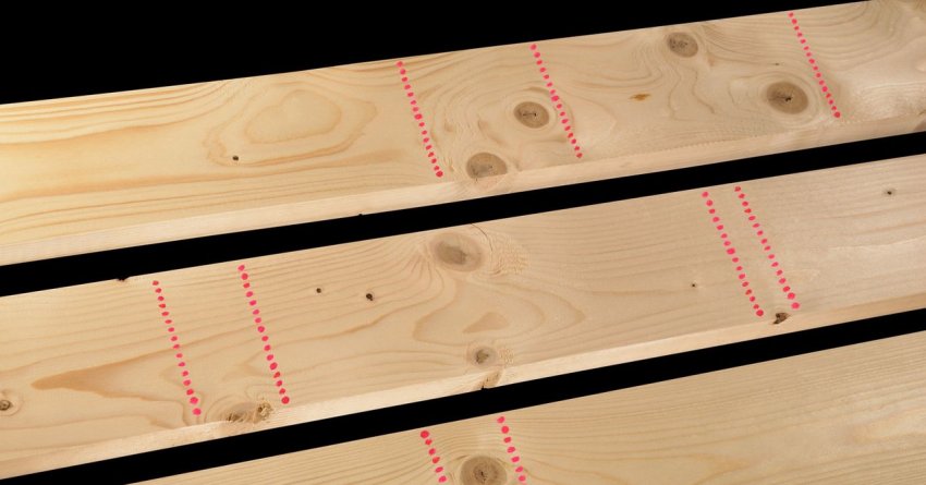 Из раскроенной на брус заготовки вырезаются дефектные участки