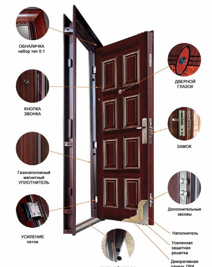 Основу полотна составляет рама, обшиваемая с двух сторон стальными листами. Вот чем отличаются разные модели дверей: