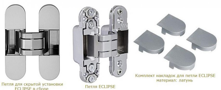 Если говорить о конструкции скрытых петель, то она будет сложнее, чем у накладных или врезных моделей.