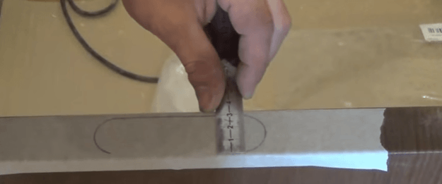 - В стенке короба, граничащей с полотном, делают прорезь, которая соответствует половине навеса.