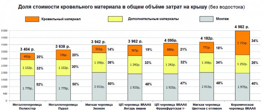 Конечный результат зависит от очень многих факторов, но главными считаются стоимость самого кровельного материала и сложность монтажных работ.