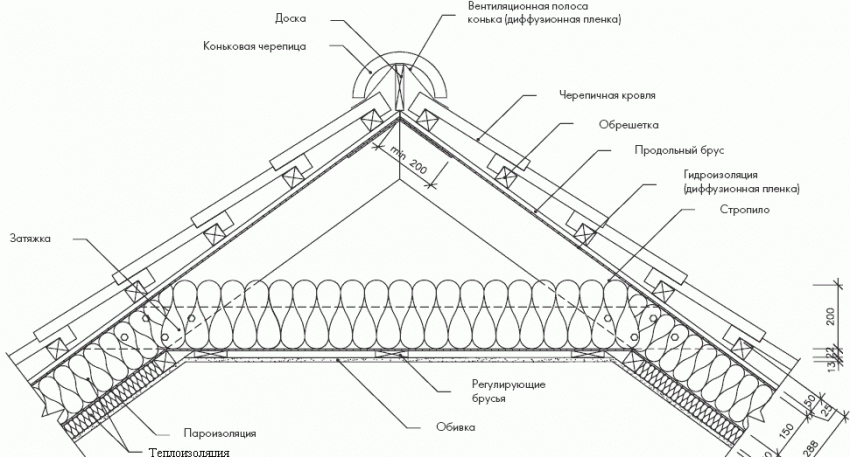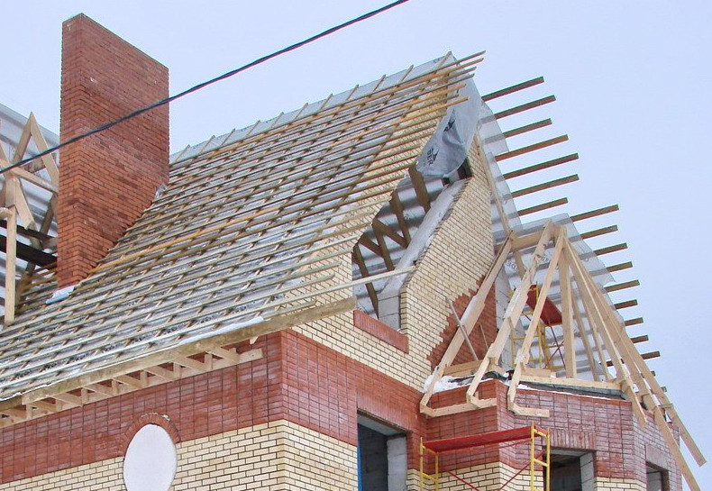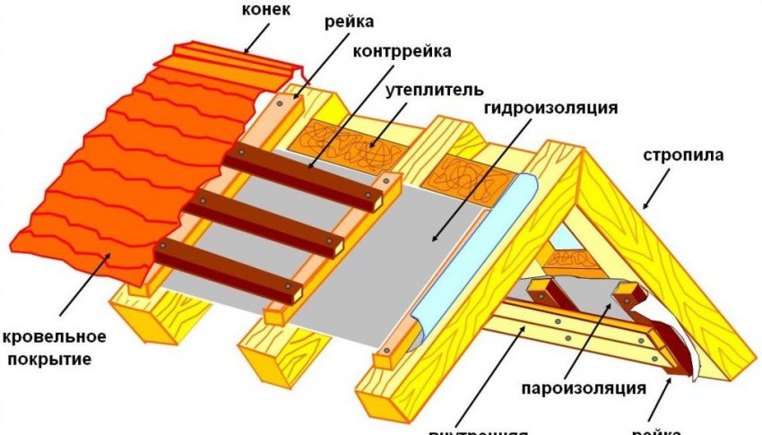 Обрешётка жёстко привязывается к стропилам, которые несут основную нагрузку
