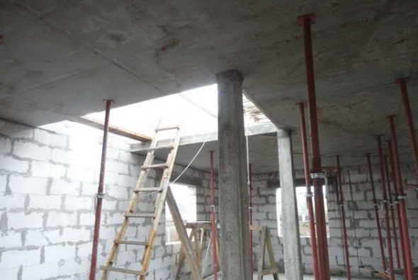 - создание железобетонных или кирпичных опорных колон, которые располагаются под линией соединения плит;