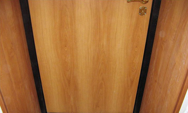 Ламинатом металлическую дверь можно обшить как внутри, так и снаружи