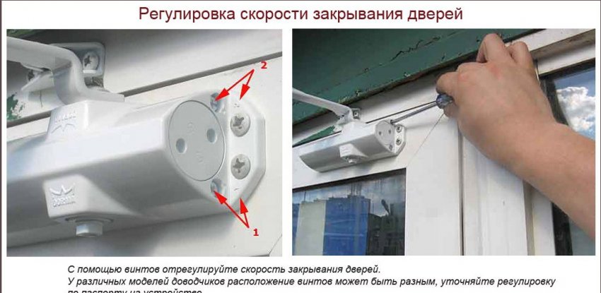 Регулировка доводчика позволяет изменять скорость закрывания двери