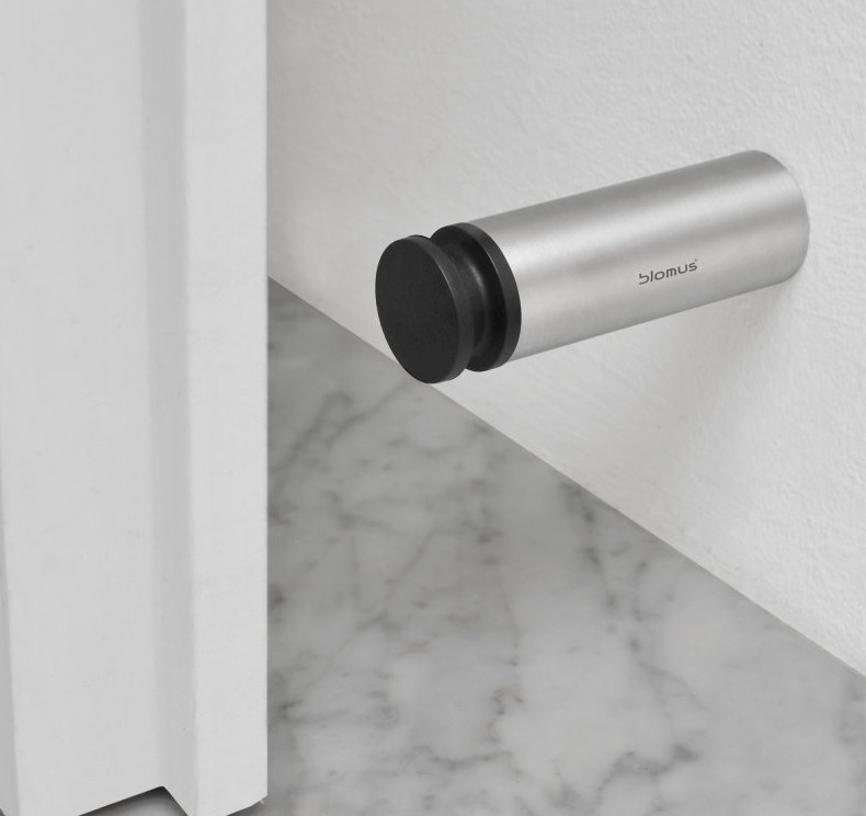 - Ограничитель открывания двери. Дополнительное устройство, защищающее двери от чрезмерного распахивания и ударов об стену. Петли устроены таким образом, что ход дверного полотна ничем не ограничен. Если с силой толкнуть створку, она будет двигаться до тех пор, пока не ударится о стену или откос. Чтобы предотвратить такой сценарий, на полу (или потолке) устанавливается стопорная шина, покрытая сверху плотной резиной или силиконом.