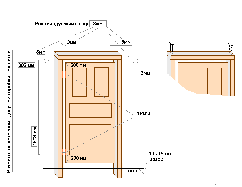При перекосе дверного полотна изменяются технологические зазоры вдоль периметра дверной коробки