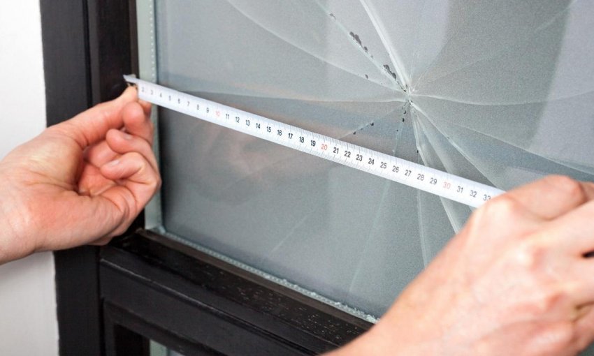 - Проём, где ранее находилась стеклянная вставка, измеряют рулеткой. При этом учитывают, что параметры нового изделия должны быть на 3–4 см меньше габаритов ложа, ведь, кроме стекла, в проём потребуется вместить герметик. Данные измерений предоставляют стекольщику.