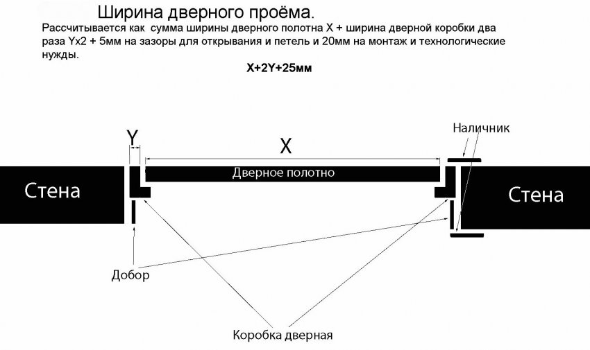 Ширина дверного добора зависит от толщины стены, а не ширины двери