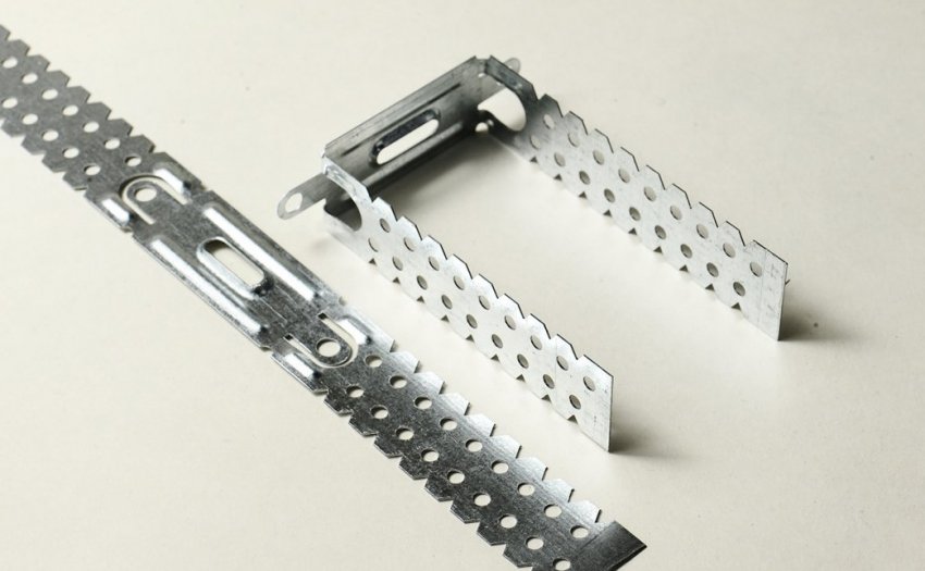 - Установка дверной рамы на кронштейнах. Как правило, все пластиковые двери (а также окна) монтируют именно таким способом. В качестве кронштейнов используют металлические пластины, которые применяются для подвесных потолков. Толщина прямого подвеса составляет от 1 до 1,5 мм, поэтому крепление получается довольно жёстким. Главный минус такого способа — необходимость оштукатуривания места крепления кронштейна. Способ применим в том случае, когда ещё не сделана чистовая отделка стен.