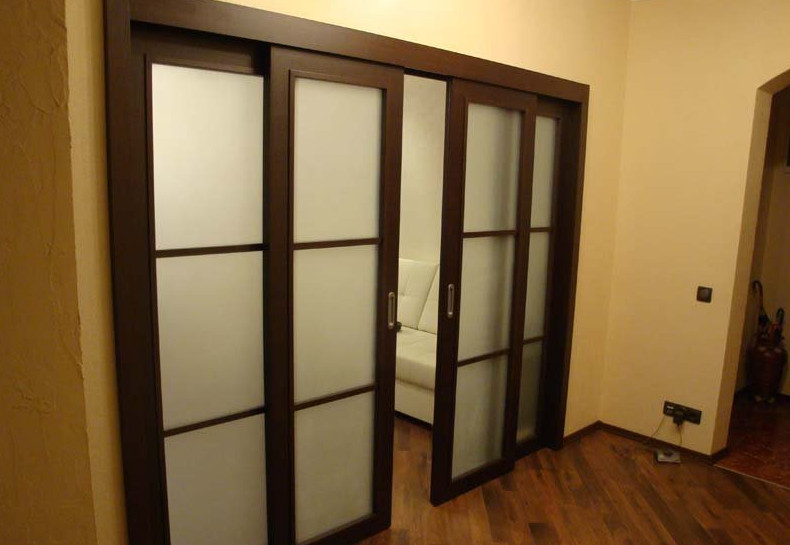 Дверь-купе — это один из вариантов раздвижных межкомнатных дверей. В отличие от двустворчатой конструкции межкомнатная дверь-купе бывает одностворчатой, трёхстворчатой и даже четырёхстворчатой. Причём двигаться при этом может одно или два полотна. Установка производится в том же порядке, что и у раздвижной двери в соответствии с инструкцией производителя.