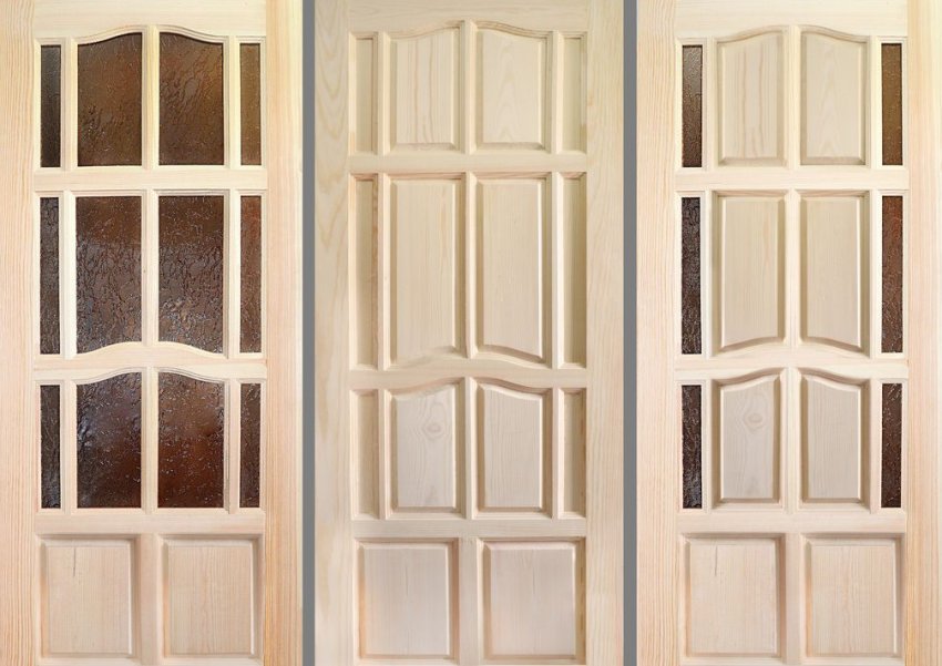 Неокрашенные двери из сосны имеют светлый оттенок