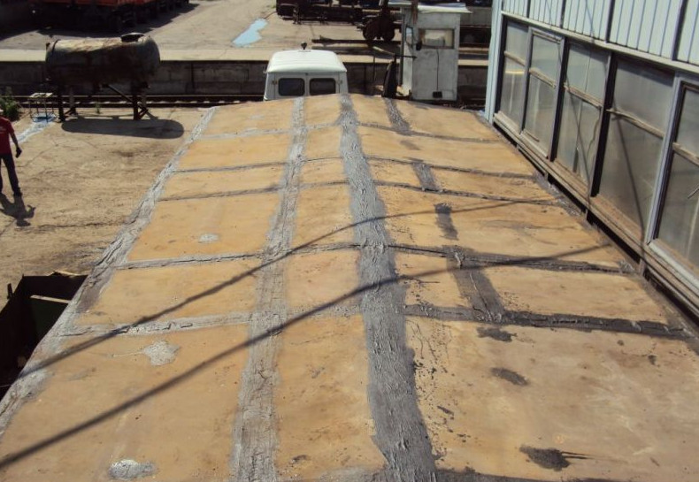 Дефекты в основании гаражной крыши устраняют жидким бетоном или герметиком