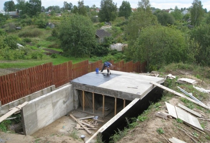 Гидроизоляцию бетонной кровли гаража обычно совмещают с утеплением, поэтому действуют следующим образом: