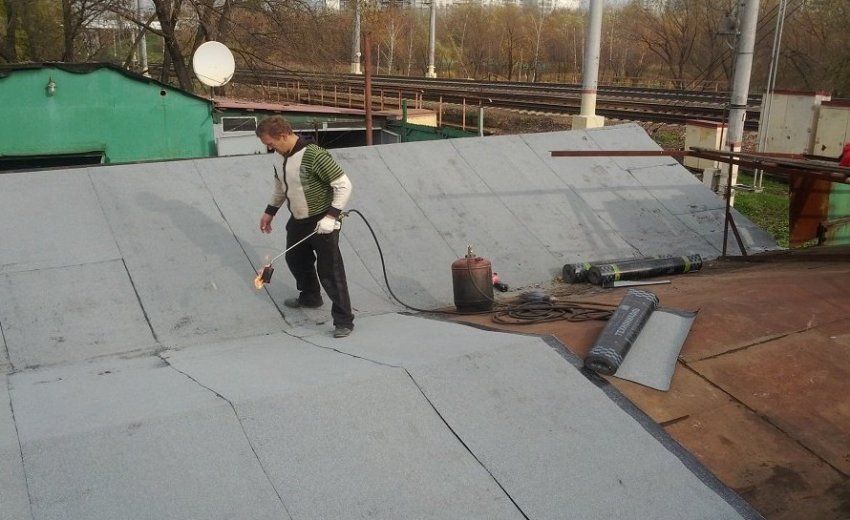 Если мягкий гидроизоляционный материал на крыше гаража испортился только частично, то ремонтные работы проводят следующим образом: