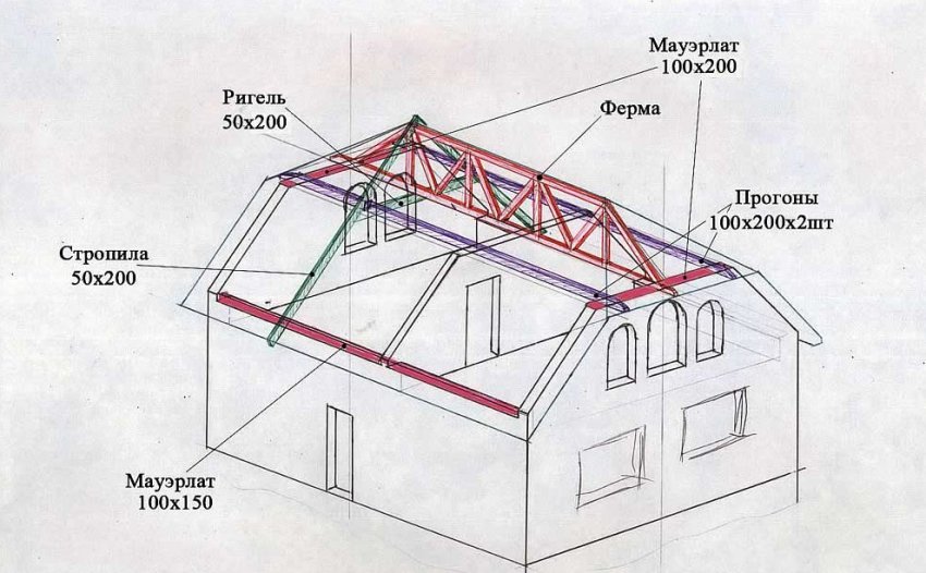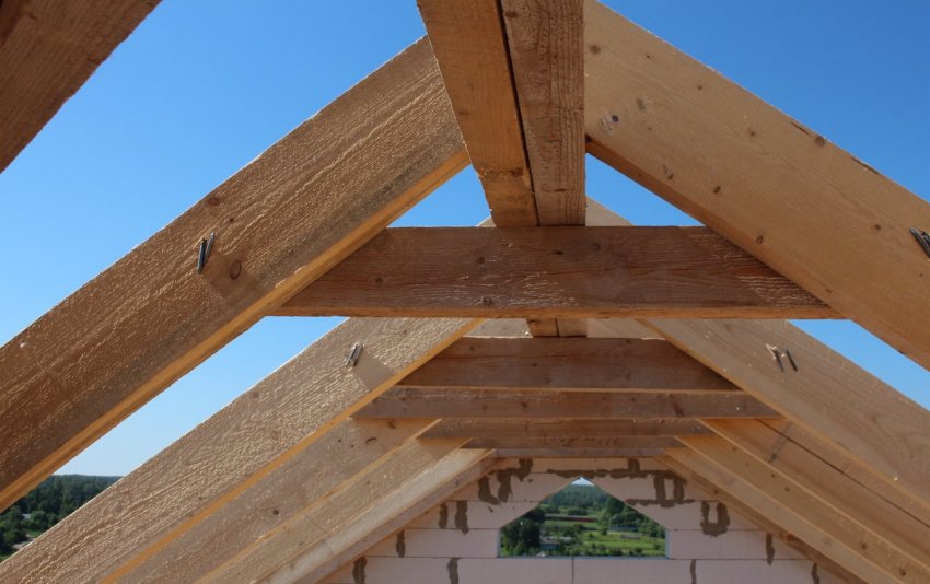 По мере увеличения длины ската конструкция стропильной системы усложняется жёсткими треугольными элементами и схватками, что придаёт ей дополнительную прочность.