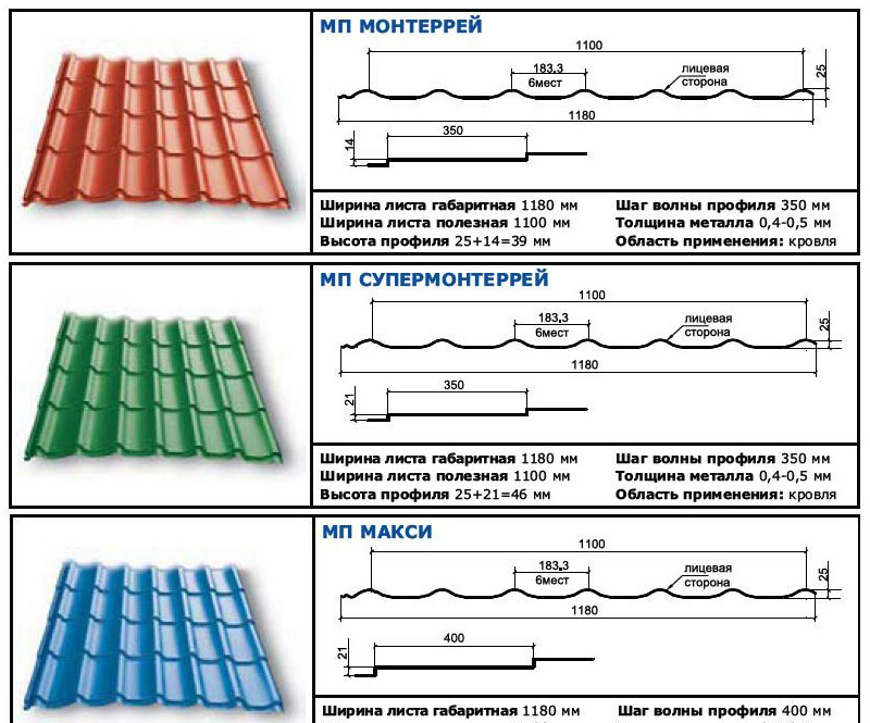 У продукции марки «Монтеррей» этот параметр может отличаться. Сегодня производитель выпускает три разновидности металлочерепицы: