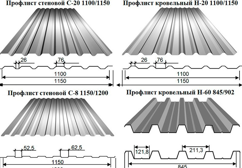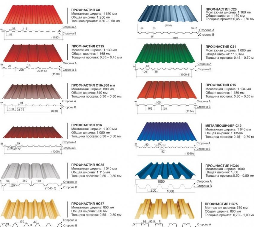 | Марка профлиста | НС-35, С-44, Н-60, Н-65 | С-8, С-10, С-20, С-21 |