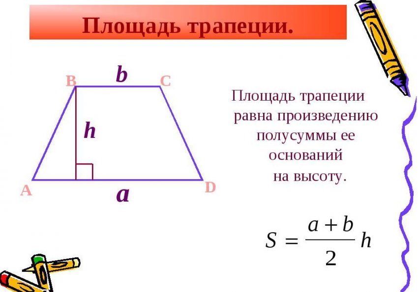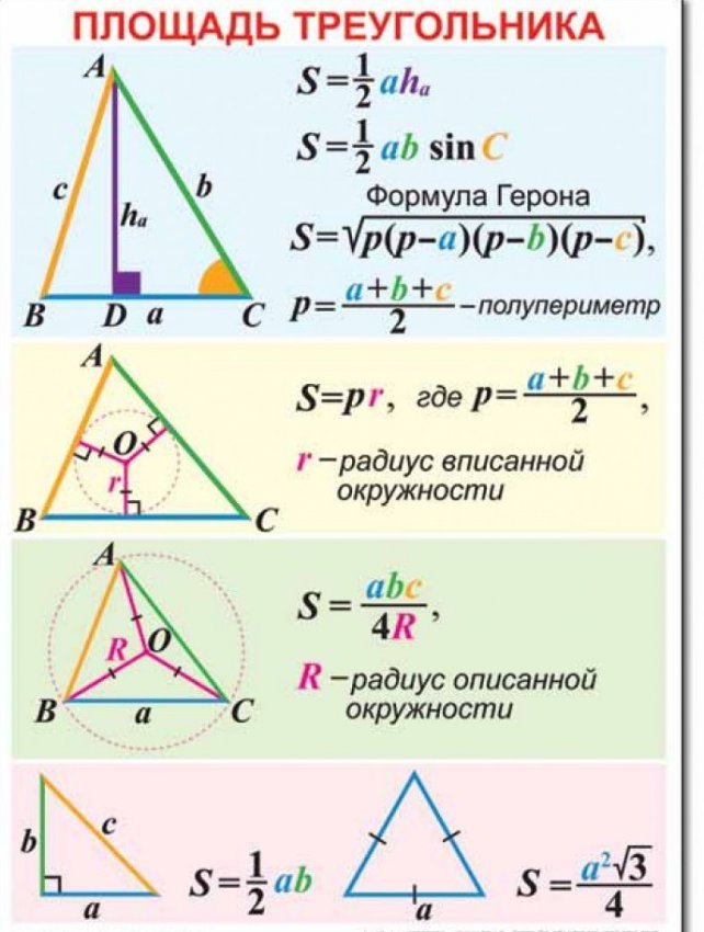 Их площадь определяется по формулам, хорошо известным из школьного курса: